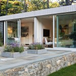 The Briggs Marsh Studio by Newport, R.I.-based Estes/Twombly Architects is an accessory building to a Little Compton, R.I.-based residence, featuring a photo studio, media room, garage, and pool. Local fieldstone walls are integrated into both the studio structure and pool area. The studio’s design makes best use of southern light exposure, the architects say. A well-lighted space for artwork and media sits above the open pavilion studio, while deep overhangs shade both levels of the home.