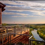 Perched on a mountain bluff overlooking the White River and Arkansas’ Ozark foothills, the Mountain Home is a lodge retreat that achieved LEED gold certification. Woven between 300 feet of forest and the mountain edge, designers made minimal disruption to the site. The home includes naturally sourced materials, high-performance widows, high-efficiency insulation, and Energy Star appliances.