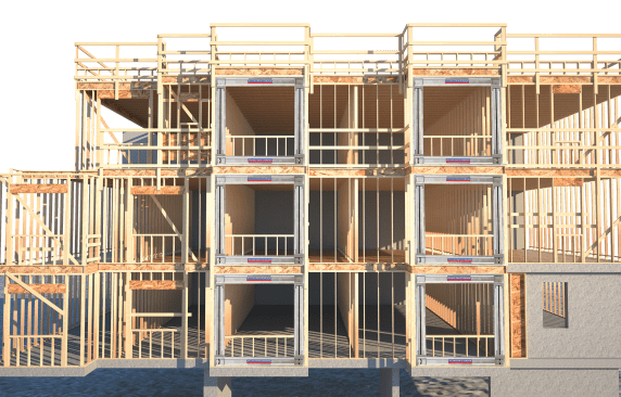 A module of the SAPPHIRE Build suite called Portal allowed the team to manage innumerable design drawings, specifications, photographs, and emails in an orderly, controlled manner, vastly simplifying communication across the teams. “It really helped elevate innovation and quality several steps beyond where we would have been without it,” says Atalla. “We can’t have conflicts with so much of the home fabricated off-site. The wall panels and floor cassettes need to bolt tight together in a matter of minutes.”