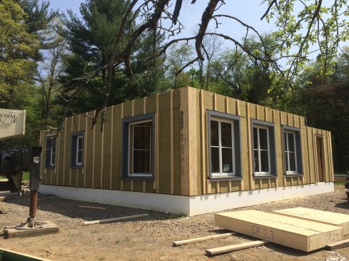 The air- and water-tight shell of each GO Home is assembled on-site; the firm says it has shipped panels as far as New York state for about $6,000. The exterior walls incorporate two layers of dense-pack cellulose and mineral wool insulation for an R-value of 50. With such a tight building envelope, the homes require a continuous fresh-air ventilation system to reduce moisture buildup and keep indoor air fresh.