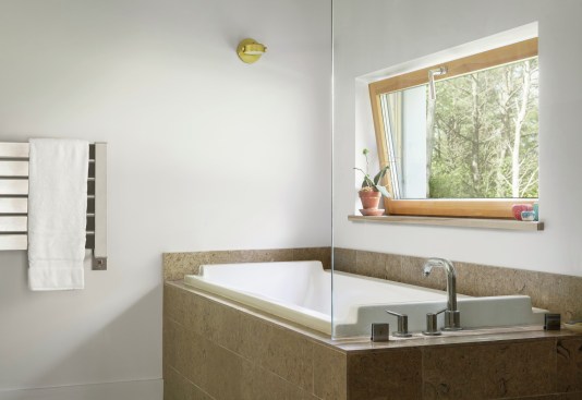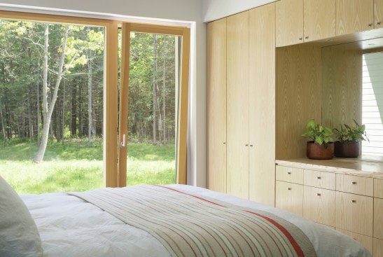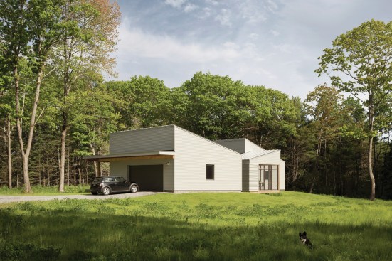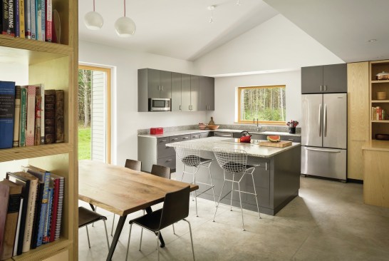“If you have a site that’s good for solar gain and you want to maximize that, then you wouldn’t install little double-hung cape windows with divided lites, for example, because you’re going to get a fraction of the solar gain going through that glass,” he says. “It just so happens that a bigger, clear piece of glass for a window is usually cheaper, has better energy performance, and is also more contemporary in design.”