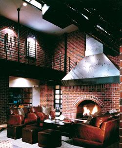 The brick exterior of the building covers only 30 percent of the surface–with less expensive siding on back elevations. But the designers made best use of that brick by installing exterior lighting to capture the public eye during evening hours when many people are out walking. And special attention was lavished on public spaces, with plenty of exposed brick, bright colors, and moody lighting throughout the lounge and bar. Fanciful wrought-iron work even brings a hint of tradition to the modern exercise room.
