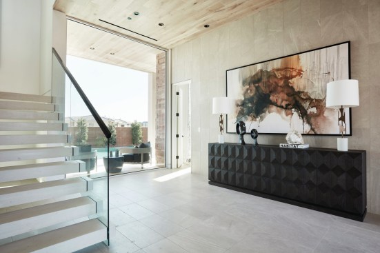 Unlike other open floor plan homes, the architects treated the entryway as its own private space. “We protected the foyer a little bit more, so you don’t immediately see into the entire house,” says William Ramsey, principal at KTGY Architecture + Planning. “As you enter, you get a transition of different entry experiences.”