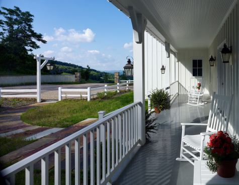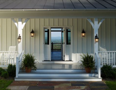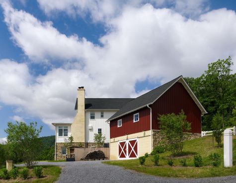 The large custom home perched above the Shenandoah Valley mimics building forms inherent to the region, while its casual open interiors fulfill the clients’ program requirements. The recently retired couple wanted to start a vineyard, indulge in their love of cooking, accommodate frequent visits from nearby grandchildren, and enjoy the site’s panorama of the Blue Ridge Mountains. The updated contextual design also respects the firm’s mandates. “We tried to make it look like a farm compound to break down the size,” Vanze explains. “We also didn’t want to have the building overwhelm the site by being on the top of the ridge, but still took full advantage of the vast views.”