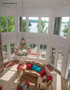 The new level holds a variety of recreational spaces that will be perfect for the clients’ three grandchildren: a game room with a billiards table, seating space, and even storage cubbies for board games. There also are lots of windows to capture the breathtaking view. Since the back of the home is so tall, it would be difficult to reach rain gutters for cleaning, so they were left off. All told, the extra level added a little over 1,200 square feet. Other personalized touches included finishing the bonus room with nautical-themed bunk beds, reversing the whole layout (a necessary change to accommodate the garage on the lot), and choosing low-maintenance exterior materials.