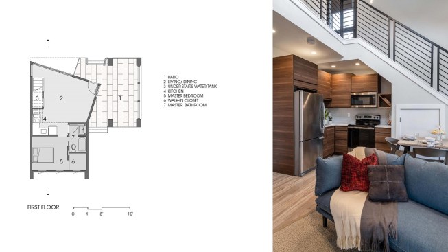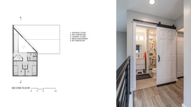 To accommodate a potential single parent, the stairway and second level were designed with high visibility, due to the master bedroom’s location on the lower level.