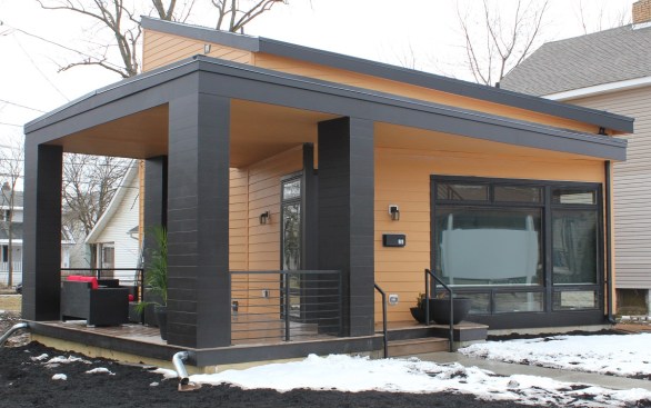 The first Legacy House was completed in the firm’s home city of Columbus in February 2019. Built with three bedrooms and two bathrooms, the home encompasses approximately 750 square feet and stands out in the area’s Linden neighborhood with a bright orange façade and modern exterior.