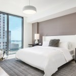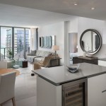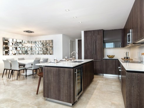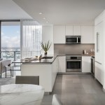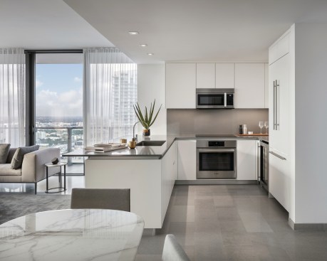 Dubbed Reach and Rise, the two 43-story condominium towers each comprise 390 luxury residences that are delivered move-in ready with imported marble floors, city view terraces with glass and aluminum railings, and floor-to-ceiling sliding glass doors. Kitchens include Italian-made cabinets, premium Bosch appliances and built-in Uline 48-bottle temperature-controlled wine storage while bathrooms boast modern Italian cabinetry, integrated-light mirrors by Electric Mirrors, Duravit Sensawash water closets, elegant soaking tubs with rain-dance showerheads and designer Danze faucets.