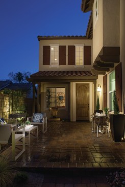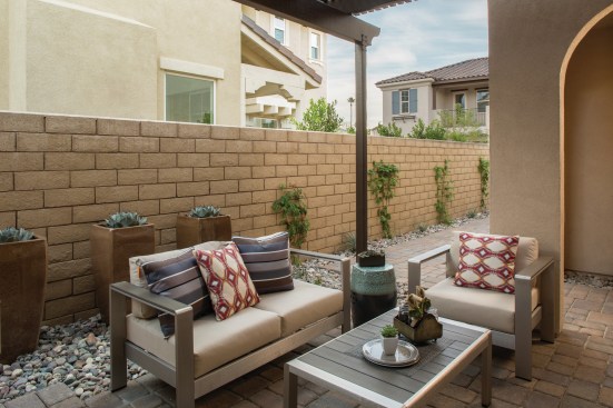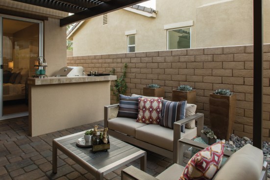 Vallera Palm Springs’ newly opened model homes were designed with indoor/outdoor living in mind, says Erin Eslinger, marketing director for The Rillington Group, the La Quinta, Calif.-based builder and developer of the project. The three bedroom/three bath homes are offered in three distinct architectural styles: Spanish Revival, Hacienda, and California Ranch. The three two-story floor plans range from 1,848 to 2,185 square feet and have the master bedroom, secondary bedroom/office and laundry room all on the first floor.