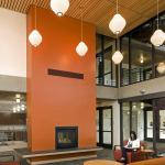 He carefully sized and placed windows to optimize natural daylight into each space, and provide more than 95 percent of all regularly occupied spaces with a direct view to the outdoors. A 165-square-foot natural turf playing field on top of the underground garage is used for intramural Frisbee tournaments, lacrosse training, socializing, and sunbathing.