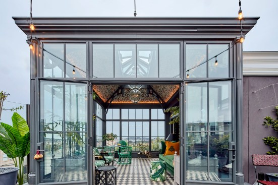Offering incredible views of San Francisco’s Presidio Heights neighborhood, this fourth-floor conservatory was built upon an existing south-facing roof deck for a client, formerly based in London, looking to re-create the age-old English conservatories that she adored from her youth.