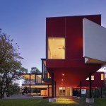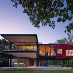 Situated on a former children’s summer camp, the property is located on the banks of the river in an area that is prone to flooding up to two feet. Faced with the challenging site, Philadelphia architect Michael Ryan designed an elevated structure–perched on stilts–to create a modern and elegant atmosphere amid the Schuylkill’s distinct outdoor scenery.