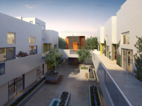 AIRE Santa Monica’s open-concept design by JFAK Architects captures daylight and enables an effortless connection between indoor and outdoor living. Consisting of three residential buildings situated around a central courtyard, AIRE offers two- and three-bedroom townhomes and garden-level flats with bright, airy interiors. The project’s 19 units include outdoor living spaces of up to 800 square feet, unmatched in the area’s condominium market, according to developer Palisades, a Los Angeles-based real estate firm.