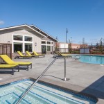 The development’s 8.1 acres include many amenities that reduce the need for car trips, such as a pool and spa, car wash, fitness center, Internet café, storage lockers, walking trails and gardens, and bike racks.