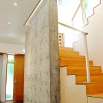 At the heart of the two-bedroom home is a 12-foot staircase that wraps around a freestanding concrete fin wall and acts as natural air conditioner in the summer. Its thermal mass absorbs cool air when the windows are open in the evening and then radiates it back during the day, Tuer says.