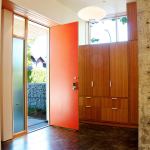 The concrete floors in the entryway and living area act as a thermal mass to cool the house in the summer and warm it in winter.