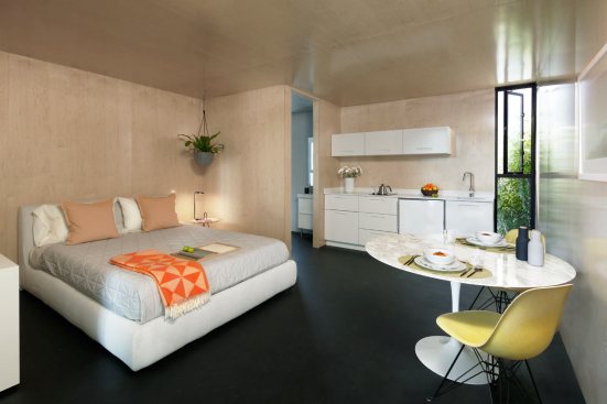 According to the firm, the structures are 40% more efficient than traditionally built homes, and feature LED lighting and optional add-ons including solar panels and water collection features. Next, the team is working on implementing an innovative rooftop system that converts air and sunlight into water by extracting humidity, with the goal of taking the units off the grid for both electricity and water.