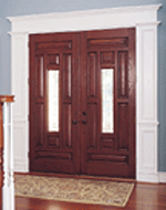 Classic crafted: Molded of impact-resistant fiberglass, Classic-Craft offers the look and feel of natural red oak. Resistant to dents, warping, and cracking, the door features solid oak square edges, a polyurethane foam core, a wide laminated wood lock stile running the entire length, and a moisture-resistant bottom. The door is available in a wide variety of configurations with decorative glass, doorlights, sidelites, and transoms. All are insulated with tempered glass. Therma-Tru. 800-537-5322. www.thermatru.com.