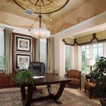 “We envisioned the study as a rich, masculine space made for an attorney or investor,” says Michelle Reich, of The Interiors Group, “whereas the catchall home office next to the family room is for the stay-at-home mom. We pictured her as someone who’s very involved in her kids’ activities, school volunteering, and perhaps charitable work in the community. She likes to try new recipes and maybe does a little scrapbooking on the side.”