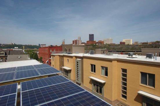 And it’s part of a big-picture revitalization effort that’s doing its part to stimulate the local economy. Located on a former brownfield parcel (which Sota is buying off in chunks from the Pittsburgh Redevelopment Authority), the project incorporates locally sourced concrete block and regionally produced drywall made with recycled fly ash. Its foundations are made with river gravel dredged from the adjacent Monongahela River.