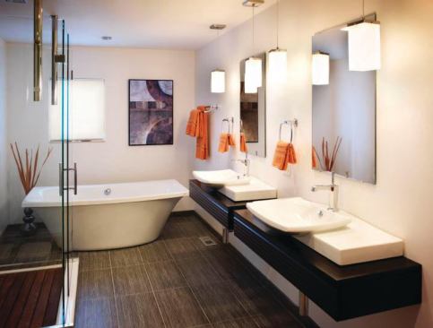That’s not all there is to love about the net-zero unit. As one would expect in a model, it’s also loaded up with goodies such as custom handrails, bamboo flooring, upgraded LED lighting fixtures, whole-house audio, a security system, and high-end cabinets.