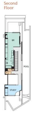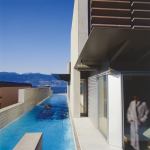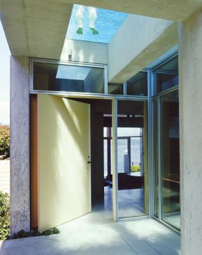 But if any of these design moves sound like bows to expediency, one look at the result proves otherwise. Open to the sky and the bay, the elevated pool offers privacy without confinement. The shifting patterns of light that filter through the pool’s glass floor create a distinctive mood before one even enters the house.