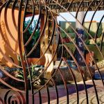 Many of the outdoor design details are based on natural motifs, like the abstracted outlines of seashells and waves on the railings and the indigenous vine-wrapped tree-trunk posts. Colors, too, complement the site’s vegetation. The clients said they hate green, yet it is used to great effect with yellow and red. “This rocky landscape is shades of dusty gray and green, and the house wanted to be green,” Cathi says. “I took them on a journey about color and they came to the same conclusion.” A deeper journey also occurs: an alternative view of how to live beautifully in a world that welcomes everyone.