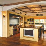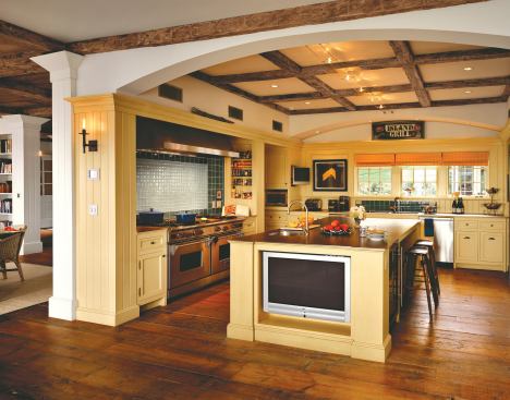 The architects departed from the usual formula of a big, open-to-the-family-room kitchen, opting for a more intimate, self-contained space that accommodates Susan Harris’ passion for cooking. Stainless steel counters, which she loves, provide plenty of surface area for setting down hot pots and pans. And a small sitting area gives her husband and twin college-age sons (who spent a summer working on the house as laborers on Shilling’s crew) a comfortable place to park themselves while she’s preparing a meal. Shilling built a handy niche for a plasma TV into the side of the island that faces the sitting room, adding to that space’s appeal. An adjoining breakfast room and screened porch work well for casual dining, and a butler’s pantry and hallway china closet supply nearby storage space. “We pulled some of the storage out of the kitchen to be able to keep it the size that it is,” Goodwin says. Continuous crown molding, beadboard paneling, and arched openings lend the room its own distinct identity, while low-voltage track lighting strung on delicate cables illuminates slicing and dicing.