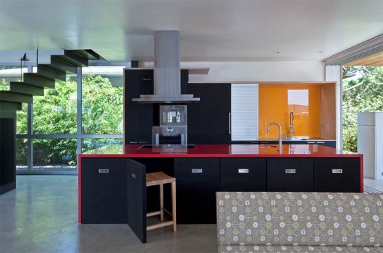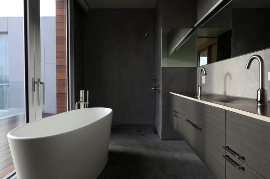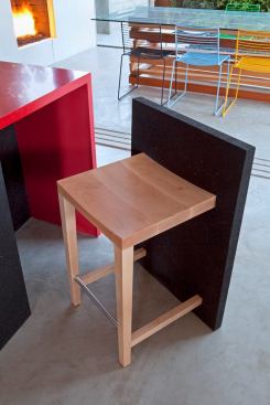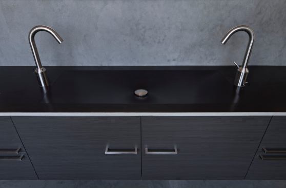 Discarded rubber tires getting new life through recycling isn’t news anymore, but when the use is ingenious and inexpensive and the results are handsome and durable, attention must be paid. So it is with RUBBiSH, the recycled rubber products designed under the name mnm|MOD by architects Erla Dögg Ingjaldsdóttir and Tryggvi Thorssteinson, the masterminds at MINARC, (the firm also won Project of the Year and grand awards for the kitchen and master bath at Appleton Living). At Superb-A House in Venice, Calif., both the bathroom sink and the kitchen stools are made of RUBBiSH. The chairs provide comfortable kitchen island seating and tuck away neatly when not in use, because the chairs’ back panels double as front panels for the island. The bathroom sink, incredibly, weighs under a pound; it stands up to hard use and it too can be recycled at the end of its life. Stools and sink made of RUBBiSH sounds like anything but.