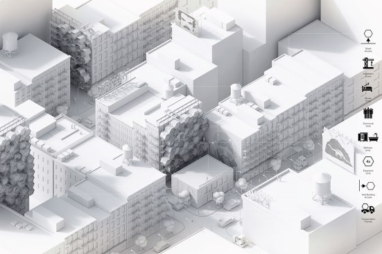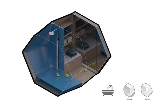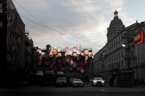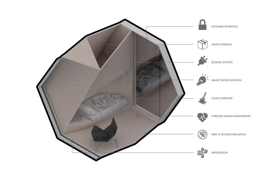 Founded by Norwegian designer Andreas Tjeldflaat, Oslo and New York–based creative agency Framlab has revealed a concept proposal for the production of hexagonal pods called Homed that could help to house New York City’s homeless. The firm aims to utilize often overlooked urban spaces, such as window-less, blank façades of multistory buildings, by attaching the single-occupancy units onto these unused surfaces of “vertical land.”