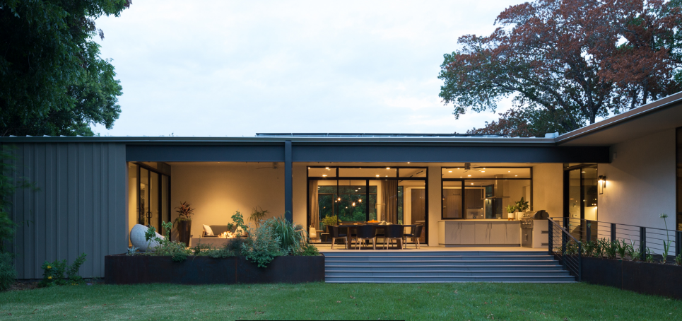 True to her firm’s green design principles, when the Austin-based designer learned the pre-existing 1951 ranch-style home she planned to remodel was built on an insufficient foundation, she eschewed demolishing it (and adding waste to the landfill), and instead put a plan into place to segment and relocate the house—on a new foundation—in order to donate it to a local family of 14 in need of a place to live.
