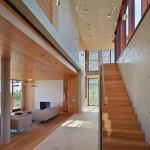 Our judges singled out these waterjet-cut aluminum screens as a creative example of how to bring classical interest to a contemporary form. Mounted on east and west glass façades, they bracket a double-height stair hall, the contemplative core of a house that otherwise is all about the ocean view. A planted roof on the second floor inspired the abstracted vines-and-flowers pattern, which brings a softer, more natural feeling to the core and sketches the sun’s movement throughout the day. “Because the screens face east and west, the morning light that filters through comes back in the evening through the west side of the house,” says architect Andrew Plumb.
