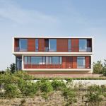 In addition to providing hurricane protection and a counterpoint to the house’s hard geometries, the screens offer privacy from adjacent neighbors on the narrow lot. “You focus on the pattern and don’t see past it, but light still comes into the center of the deep plan,” Plumb says. The 3/8-inch powder-coated aluminum plates swing out so that the windows behind them can be cleaned.—C.W.