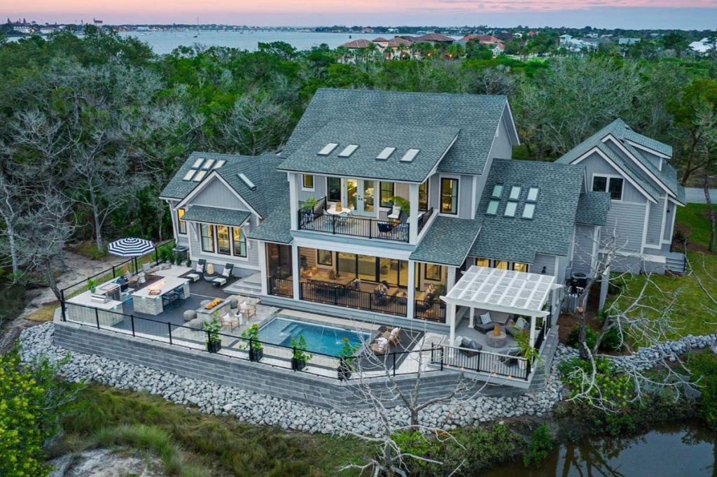 With views of the Matanzas River and the St. Augustine Lighthouse, the HGTV Dream Home 2024 is a coastal three-bedroom, four-bathroom retreat on Anastasia Island, Florida. The home was designed by architect Michael Stauffer and built by local builder Glenn Layton Homes. Brian Patrick Flynn designed the interiors.