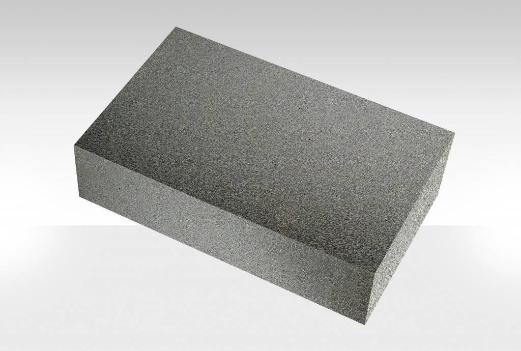 This thermal glass material, in its high-load version, has a compressive strength of about 400 psi and a high thermal performance and insulating value. Looking at the material, it could be mistaken for foamed carbon, because it’s black. But, more than half of its content is made from recycled glass and other inert minerals that are nontoxic. It’s also inert to most types of decay, he says.