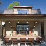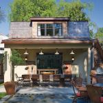 Tucked behind a pretty porte cochere in a Bethesda, Md., neighborhood, this backyard accessory unit started out as a detached garage. But then it evolved. Once the framing was up and the owners could visualize its relationship to the main house and pool, they opted to make it a guest cottage and entertainment pavilion instead. (It also has an underground basement lair for their son, who plays drums.)