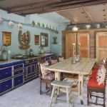 As in the main house, the guest cottage is an artful blending of old and new. A horseshoe plaque on the wall hides structured wiring for an eventual flat-screen TV, and an old farmhouse table on casters rolls away easily to free up space for parties. The centerpiece of the space is a vintage, brass-knobbed Lacanche stove that was headed for auction until the clients got it on a tip (and for a steal).