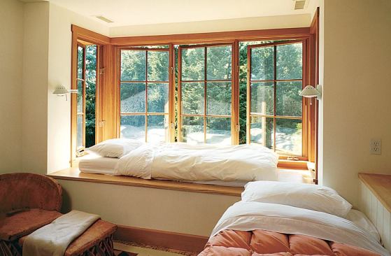 Watershed Window With their exposure to wind and spray off the Atlantic, the windows of this house have a lot of work to do. Installed at a 15-degree incline, the pool/exercise room awning units have an even greater challenge, one the window manufacturer declined to accept. “They wouldn’t guarantee a sloped installation,” says builder Arthur Trifari. “So I said I’ll figure it out.” Using red cedar sash provided by the manufacturer, Trifari fabricated his own frame units with a weatherproofing system of his own design.The key to keeping water out is a rigid metal flashing that interlocks with a groove in the sash. Trifari lined the window frame with lead-coated copper bent to form a miniature gutter. One leg of the gutter sits in a kerf cut in the window sash, creating a positive seal. “I knew the water had to have a way to get down,” Trifari says, but the tolerances were tight. “The stiles and rails are very small,” and the flashing shares the narrow space between sash and frame with the window’s hinges and struts, and the struts must clear the flashing when the window is opened. Careful design and execution made the installation work, however; Trifari reports that the windows have weathered heavy storms without a drop of infiltration.