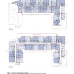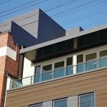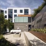 In the end, the hole in the ground proved fortuitous, since the new residential program required less parking than the originally planned commercial venture. Rather than partially filling the dirt back in, the team designed the new building as a wrap-around structure with a sunken courtyard—a move that, in essence, bought them an extra story of living space. “From the front, the new building appears to be three stories with a fourth level of massing stepped back,” Lee says. “On the courtyard side, that height limit didn’t apply, and we could go five stories because the ground was pushed down. Plus, we weren’t paying the cost of bringing all that dirt back in.”