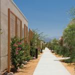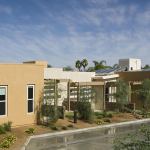 The simple, low-profile building forms, designed in a style that architect Steve Gaffney calls “streamlined moderne,” are contextual, yet practical, in a climate where triple-digit temperatures are the norm. Window trellises mitigate the effects of the sun, and each unit is equipped with a thermal chimney that vents hot air through the ceiling. Additional energy-saving features include rooftop solar panels, radiant barrier roof sheathing, HVAC systems with enhanced filtration, concrete floors, and cement plaster walls with high insulation values.
