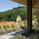 Satisfying the owners’ desire for truly native vegetation actually involved a bit of compromise. Those golden California hills that everyone rhapsodizes over? They’re not actually indigenous, Huettl notes; they got that way thanks to straw-colored grasses that came over with the Spaniards. “But people love that,” he acknowledges. “This wasn’t a native restoration as much as it was an idealization of the regional landscape.” Grasses native to northern California look greener, so Huettl split the difference with a combination of Atlas fescue, Mexican feather grass, Yucca (“the white flowers are a bonus”), blue oat grass, and Berkeley sedge (“grasses with golden hues,” he says). Deer don’t eat grass, though they do like perennials, shrubs, and some herbs. But they’ll pass rosemary, lavender, and yarrow right on by, and all those plantings are drought tolerant, too—not to mention pretty and fragrant.