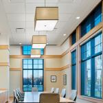 Fort Belvoir’s Woodlawn neighborhood used to be an example of the ills of cul-de-sacs, which separated and fragmented the community. Then Torti Gallas and Partners won a design competition with a plan to tie the community of military housing together by connecting the cul-de-sacs and building a community center in the middle. The new LEED Gold–certified building, which includes meeting spaces and a fitness center, takes inspiration from a nearby Frank Lloyd Wright home, and its narrow windows serve a practical purpose as well. To resist terrorist attacks, the window size was restricted and the glass laminated and mounted in specially designed frames. The recreation complex also includes a pool, community gardens, and a dog park.