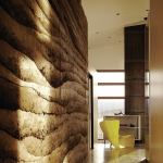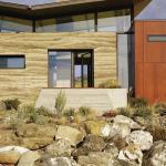 “I almost always try to design space first, from the inside out, and I don’t worry as much about [exterior] form,” the architect explains. But the house’s long, eccentrically rhythmic profile was no accident. A rambling composition suggestive of old Western mining camps, the building also echoes the jagged ridgeline of China Wall, the outcrop whose dragon-tail silhouette towers over the site. A variety of wall surfaces—rammed earth, standing seam metal, wood-veneer panels, plate steel, spaced hardwood boards, and expanded-metal screening—represent “an attempt to build different shadows at different times of day,” Nave says. “From a distance, it looks like rocks and shadows and protrusions from the ground. That’s what we were trying to do.”
