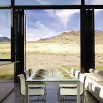 On mild days, though, with its wall of folding glass doors drawn open, the great room takes on the character of a luxurious lean-to. Simple decks, with no railings to filter the view, project into the native grass and sagebrush meadow. And if the owners aren’t riding in the hills, one imagines them unwinding outdoors, recalling their last foray and planning the next, inhabiting a space that extends far beyond the walls of their house.