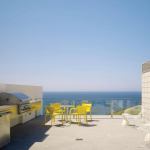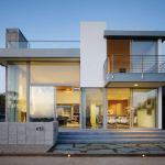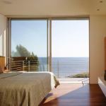 The second structure, which sits behind the first and across a rear courtyard and pool, houses three guest suites as well as the garage and a second roof deck with ocean views. Even the guest rooms offer glimpses of the Pacific through the glass windows of the main home’s first floor and a glass panel that screens the pool from the often blustery winds.
