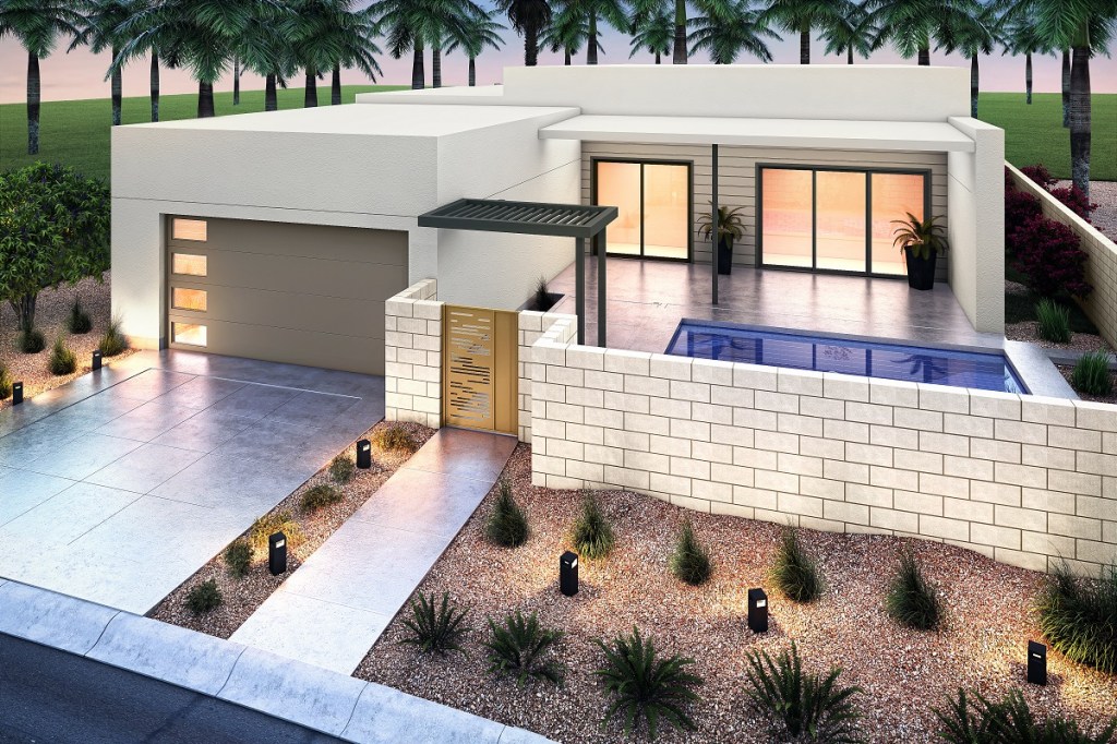 Miralon, a new “agrihood” community in Palm Springs, California, by developer Freehold Communities, will open a new-home neighborhood soon. Gallery Homes has started construction on its 50 desert-modern homes, Gallery at Miralon.