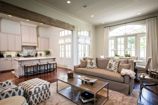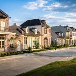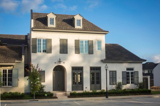 “The developer and I sat down to script the story of Perkins Lane, which we like to do at the beginning of our place-making process,” Sullivan explains. Baton Rouge is a southern city with a large student population where casual outdoor living is the standard. Open living spaces with strong indoor/outdoor relationships were a given. Sullivan took the concept even further by adding a courtyard with hardscaping, French doors, built-in gas grills, and gas lanterns for every house. “We basically took a bite out of the floor plan and crafted public spaces into more of a U-shape to get a roomy courtyard,” Sullivan says.
