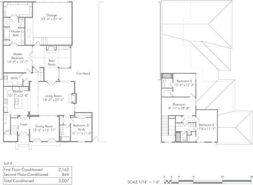 “We kept with the context and density of the surrounding garden district,” Sullivan says, adding that the precedent for this high-density siting already exists within many older communities like those adjacent to Perkins Lane. Allocating space for wide sidewalks that tie into an established network within downtown Baton Rouge further weaves the development into the city’s fabric. Alley access garage placement improves walkability and community interaction, and locating the master suite on ground level enhances indoor-outdoor ties and boosts sales.