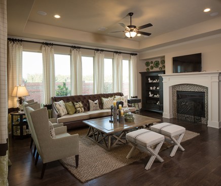 Although they’re on smaller parcels of land, the homes feel spacious, says Trendmaker president Will Holder. They’re outfitted with three to five bedrooms, three- and four-car garages, and ample storage spaces, including backpack racks for children.Interior finishes such as dark-stained floors, plentiful oversized windows, granite countertops, and slate patios in the backyards add a touch of luxury. In addition, residents have access to a range of community amenities, including a clubhouse, resort-style pool, walking trails, and a lake.