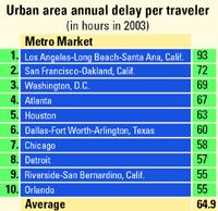 PEOPLE LIVING IN SOME OF THE hottest housing markets spend increasingly more time stuck in traffic, according to the 2005 Urban Mobility Report by the Texas Transportation Institute. The study concluded that Americans lost 3 billion more hours due to congestion in 2003 than in 1982.